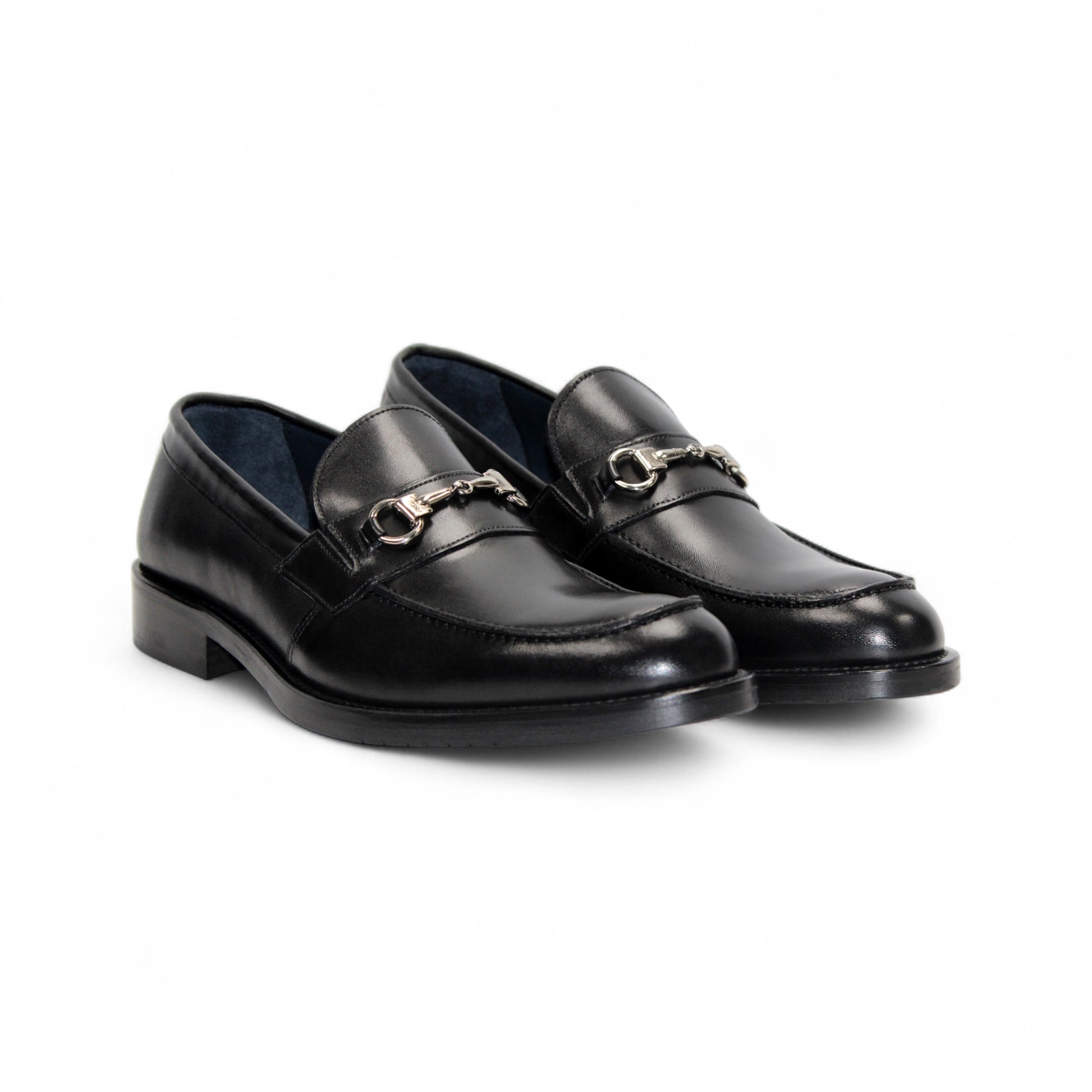 Ben is a sleek and modern shoe crafted in Italy from genuine leather. Available in classic black and blue, it features elegant silver hardware for a refined touch.